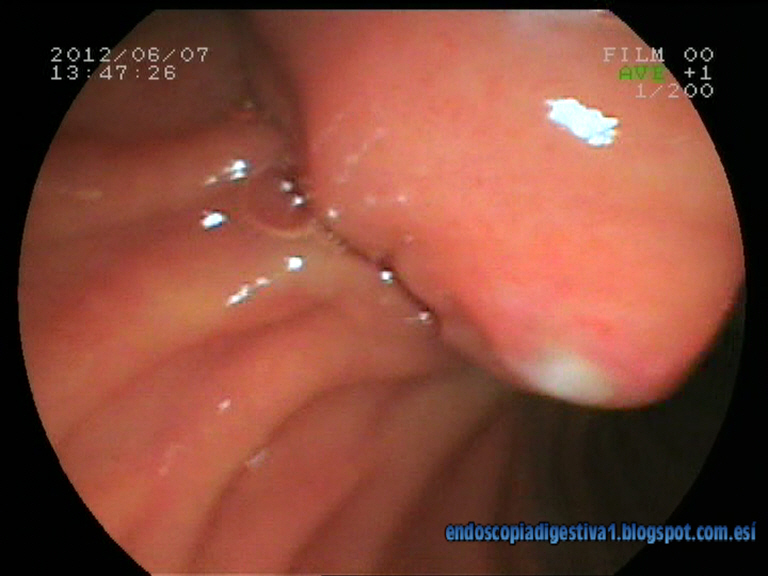 Paciente de 76 años de edad con antecedentes de DM tipo II complicada con micro y macroangiopatía, HTA y colelitiasis sintomática. Episodio de colangitis por coledocolitiasis múltiple de 8 mm, resuelta con antibióticos en abril de 2012, rechazando tratamiento endoscópico y quirúrgico en ese momento. Hace 3 semanas ingresa por nuevo episodio de colangitis (triada de Charcot) asociada a taquicardia (> 100 lpm), pero sin hipotensión ni afectación neurológica. Analítcamente destacaba leucocitosis con aumento de GOT/GPT, BRT (6 mgr/dl) y aumento de los enzimas de colestasis. En la ecografía abdominal se encontraba una colelitiasis múltiple con dilatación del colédoco discreta (9 mm) y coledocolitiasis distal. Se decidió realizar la CPRE de forma urgente, apreciando una papila preñada con ligera emisión de material purulento. Ante el aspecto de la papila, se inicia el acceso biliar directamente con esfinterotomía de aguja consiguiéndolo sin excesiva dificultad, observando la emisión de abundante material purulento. Finalmente se extrajeron 3 coledocolitiasis de unos 8 mm quedando la vía biliar extrahepática completamente limpia por lo que no no se colocó prótesis biliar. La evolución fue favorable.