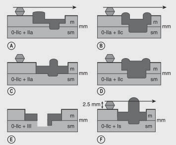 Con todo lo dicho, lo primero que hay que tener en cuenta es que tipo de lesiones son susceptibles de mucosectomía. El objetivo es predecir el riesgo de infiltración profunda de la submucosa. Tres son los factores a tener en cuenta. El primero es la apariencia endoscópica preferentemente combinada con cromoendoscopia (colorantes vitales o virtual NBI/FICE): se usa la clasificación de París modificada en relación al aspecto morfológico y el tamaño (el riesgo de invasión submucosa es prácticamente 0 para las lesiones < 1 cm y baja para las lesiones 1-2 cm.). Las lesiones pueden ser polipoides (tipo I), planas (tipo II) y ulceradas (tipo III). También hay formas combinadas. Las lesiones con mejor indicación de EMR son las tipo IIa (ligeramente elevadas), IIb (totalmente plana) o IIc (plana deprimida) donde el riesgo de invasión submucosa < 10 %. Junto a la valoración morfológica básica, con la cromoendoscopia y magnificación se puede perfilar el mayor riesgo de infiltración submucosa (clasificación de Kudo). El segundo factor es la valoración de la penetración en la submucosa mediante ecoendoscopia (tomando como referencia la clasificación TNM, 7ª Ed. 2009 de la AJCC): la USE convencional a 7.5 Mhz puede distinguir las lesiones T1 (invasión de mucosa y submucosa) de las T2 (invasión de la muscular propia) en > 90 % de los casos, pero suele ser menos segura en cuanto a la diferenciación de los T1m (limitados a la mucosa) respecto de los T1sm (afectación mucosa) ya que existe una tendencia a la sobreestadificación a T1sm (de lesiones realmente limitadas a la mucosa) debido a la fibrosis e inflamación peritumoral. Por este motivo, es muy importante no tomar la decisión de contraindicar la EMR o ESD en base exclusivamente a los hallazgos ecoendoscópicos y realizarla con un doble objetivo: valorar exactamente el grado de penetración submucosa con el análisis histológico de la pieza y la posible curación endoscópica. En este sentido, el «lifting sign» con inyección submucosa de SSF o similares es fundamental.
