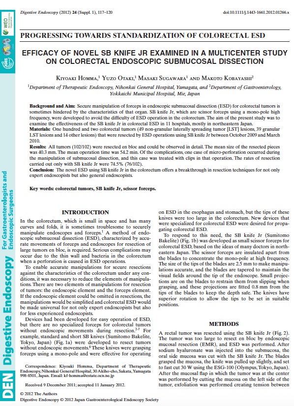 El pasado mes de octubre de 2015 nuestro hospital tuvo la gran suerte de tener a un endoscopista japonés experto en ESD, el Dr. Katsumi Yamamoto del Hospital Universitario de Osaka, durante dos intensas jornadas para realizar cuatro casos de lesiones colorrectales que previamente habíamos seleccionado. El Dr. K. Yamamoto además de ser un gran experto, es aún mejor persona. Su educación, capacidad de trabajo y amabilidad entre otras cualidades, destacan a primera vista. Sin duda ha servido para que nuestro centro se ponga como objetivo la realización de esta técnica en los próximos años.
