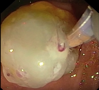 Paciente de 57 años con antecedentes de hipertiroidismo tratado con Iodo radioactivo. Se comenzó a estudiar en consultas externas de digestivo por cólicos biliares y anemia ferropénica. En las pruebas complementarias la analítica hepática es normal, hemograma con hemoglobina 11,1 gr/dl, amilasa de 111 y CEA y CA 19.9 normales. Ecografía de abdomen con dilatación de colédoco de 1 cm. Por este motivo se hizo colangioRNM en la que se aprecia dilatación de colédoco de 11 mm, se describe páncreas normal y el resto del abdomen. Con estos hallazgos se planteó y realizamos una CPRE en mayo 16. En la CPRE llamo la atención un orifico papilar en forma de ojo de buey (Fish eye) muy sugestivo de neoplasia mucinosa papilar intraductal(NMPI). Se accede a vía pancreática y al inyectar contraste se ve salir bolas de moco perlado. Después se accede a vía biliar que esta algo dilatada y se hace esfinterotomía biliar y colocación de prótesis plástica 10 F y 7 cm. Dado este hallazgo se completa estudio con TAC de Abdomen, se revisa la RNM de abdomen, y se aprecia en la RNM un conducto pancreático dilatado de 8-10 mm en cabeza de páncreas y en colon transverso en dicha RNM se aprecia un defecto de repleción compatible con neoplasia de colon transverso. Se completa estudio con colonoscopia y se aprecia un pólipo pediculado de 5 cm a 50 cm de margen anal además de una neoplasia estenosante de colon transverso que se biopsia y se confirma este resultado. Se completa estudio con ecoendoscopia por los hallazgos de la CPRE y en la misma se aprecia una alteración en cabeza de páncreas compatible con masa de 2 cm, de la se toma citología (USE_PAAF) que no fue positiva para malignidad. Con todos estos hallazgos se llega al diagnóstico de NMPI de conducto principal de 1 cm, con clínica atribuible a la misma y neoplasia de colon síncrona. Se comentó en comité de tumores y se acepta para intervención de ambos procesos: páncreas y colon. El paciente se interviene en setiembre 16 realizándose una operación de Whipple y colectomía, con bordes libres de enfermedad en la cirugía de páncreas, pero en la colectomia tiene 2 implantes peritoneales que se resecan y se envía a oncología